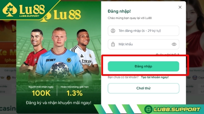Sau khi nhập xong thông tin, nhấn nút “Đăng nhập Lu88”. Nếu thông tin chính xác, hệ thống sẽ tự động đưa bạn vào giao diện chính của trang web.